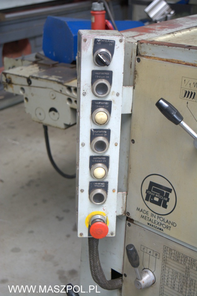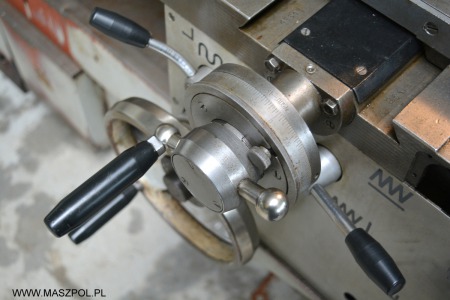 Maszyna posiada hartowane łoże , przyspieszone posuwy , liniał do toczenia stożków , uchwyt 3-szczękowy z niezależnymi szczękami , dokumentacja techniczno-ruchowa DTR