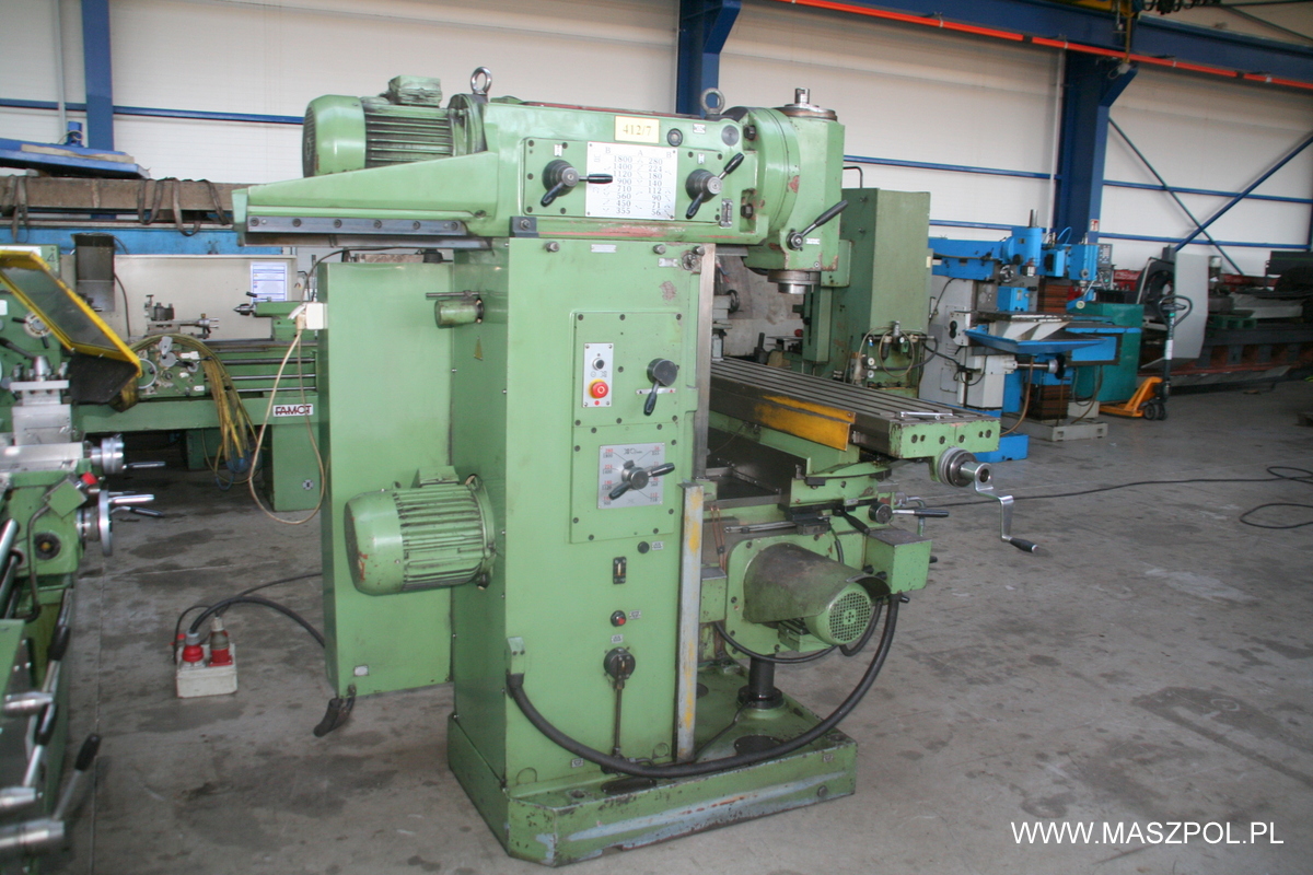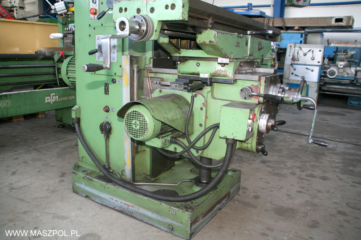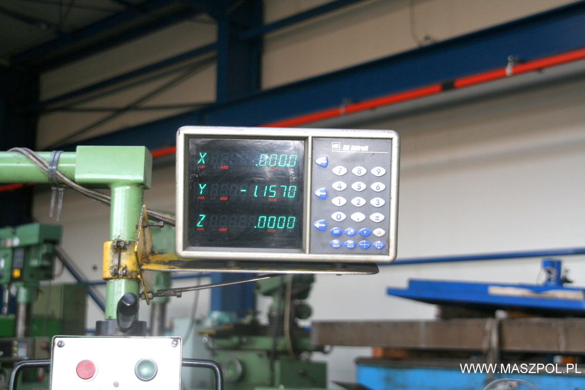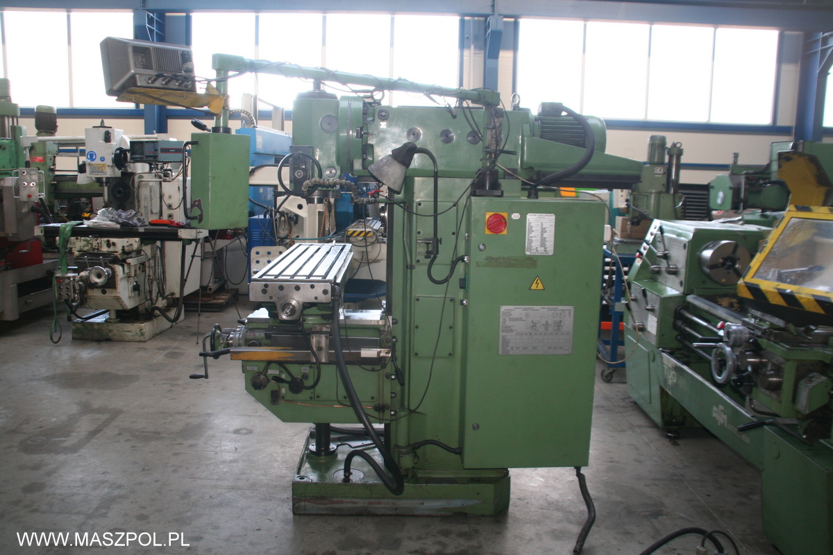 Frezarka posiada przyspieszone posuwy , odczyty cyfrowe , hartowane prowadnice , wysuwaną pinole , skrętna głowice , skrętny stół , sterowanie z wędki , kompletna dokumentację DTR. Belka frezarki posiada własny wrzeciennik umożliwiający przesuw poprzeczny co pozwala zwiększać powierzchnię obróbkową.