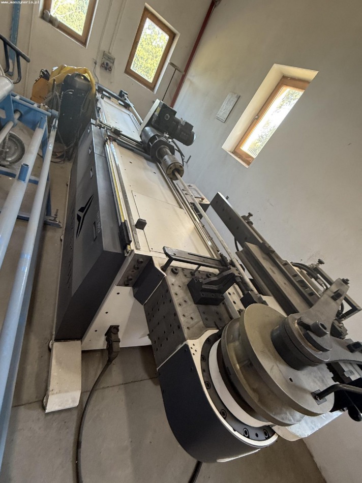 Maszyna przeszła jedynie próbne uruchomienie, nie była wykorzystywana w warunkach produkcyjnych. Specyfikacja techniczna giętarki do rur i profili VLB GROUP ECO 92 NC2 - roboczogodziny: 5 h - sterowanie NC - oprogramowanie: VLB 2D - wydajność gięcia: ⌀ 92×4 mm - maksymalny promień gięcia: 230 mm - maksymalna długość rury: 3000 mm - wysokość robocza: 1100 mm - średnica matrycy: 90 mm - pojemność zbiornika na smar: 18 l - moc zainstalowana: 8,25 kW - układ pneumatyczny z jednostką filtracyjną i regulacją wejścia z ręcznym skraplaczem - ciśnienie układu pneumatycznego: 6 bar - temperatura otoczenia: +5/+40°C - wilgotność względna: 5-75% - zasilanie: 380/400 V; 47-63 Hz - gabaryty (dł. x szer. x wys.): 5107 x 1429 x 1477 mm - ciężar maszyny ECO 92 NC2: 2420 kg