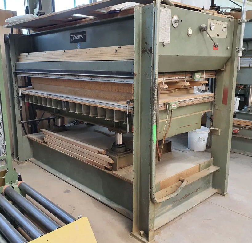 Grzana prasa półkowa JOOS do forniru 25.09.8211 Cena netto 14 900 pln Półkowa prasa do forniru JOOS 220 x 110 Dane techniczne: - półka: 2400 x 1250 mm - półka grzana elektrycznie góra/dół - prasa niemieckiej produkcji JOOS - regulacja temperatury - oryginalny, fabryczny lakier