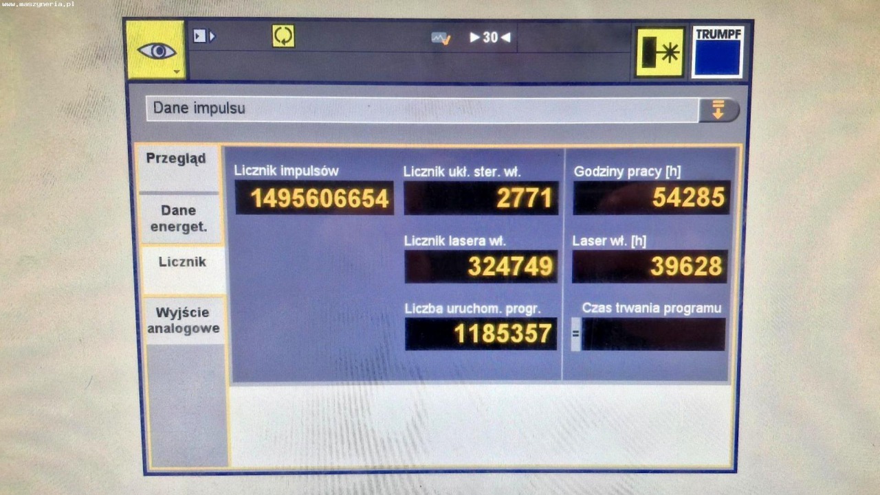 roboczogodziny maszyny TRUMPF TruLaser 5030: 54285 h
