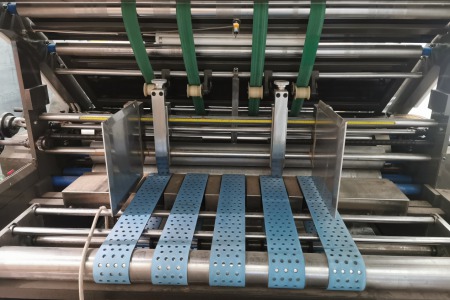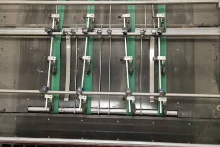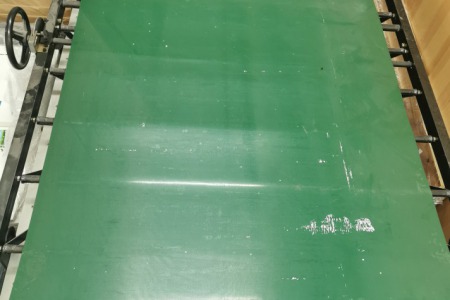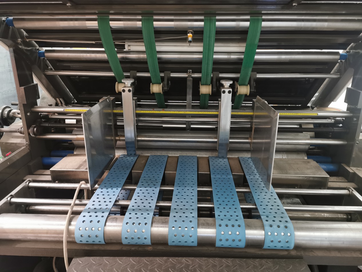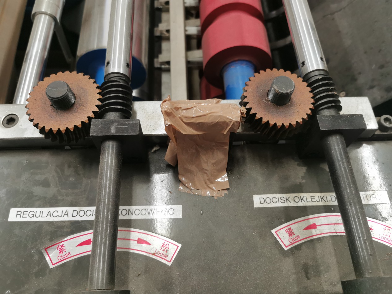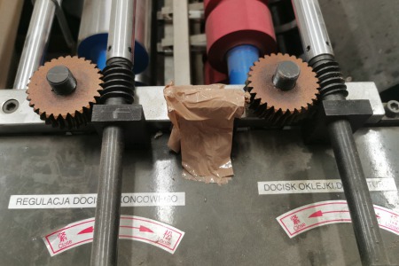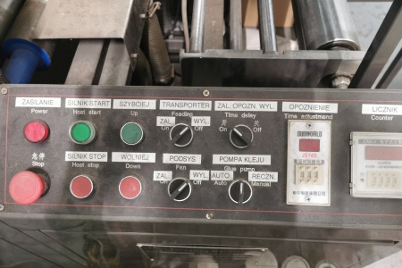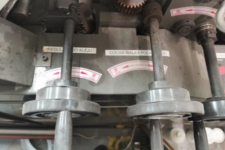 Półautomat do kaszerowania MZC-K1300 2016 rok Maszyna do oklejania tektury litej i falistej (fala E,B,C,BE i BC) arkuszami papieru z nadrukiem o gr.pow.150 gr/m2. Ręczne podawanie oklejki i automatyczne podawanie tektury. Maksymalny rozmiar tektury 1300 x 1500 mm. Minimalny 320 x 450 mm. Szybkość od 0-90m/min