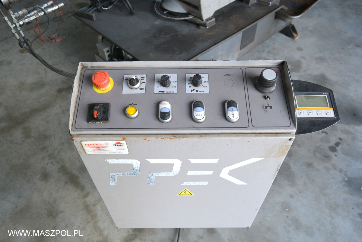 Maszyna wyposażona jest w następujące urządzenia : zacisk do cięcia w pakiecie (hydrauliczny) , lampka halogenowa , lektroniczny wyświetlacz kąta ramienia , falownik i płynna regulacja prędkości taśmy — lepsze dop