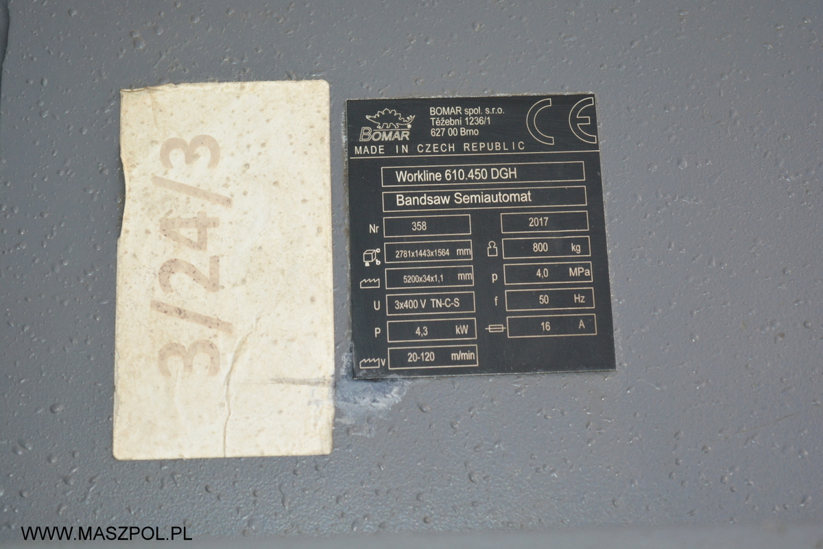 Przecinarka taśmowa piła Bomar Workline 610.450 DGH - rok 2017