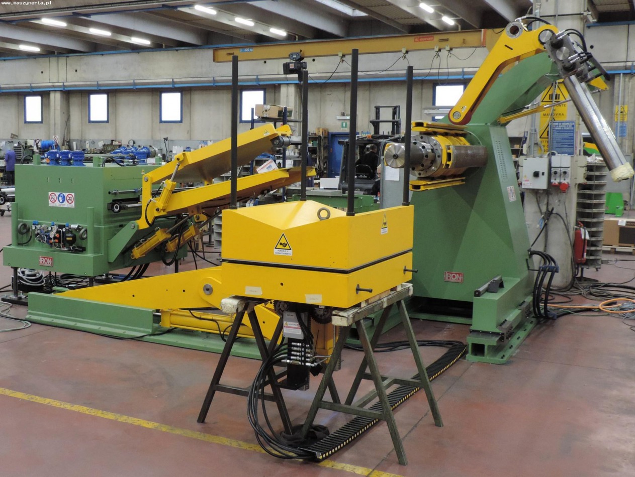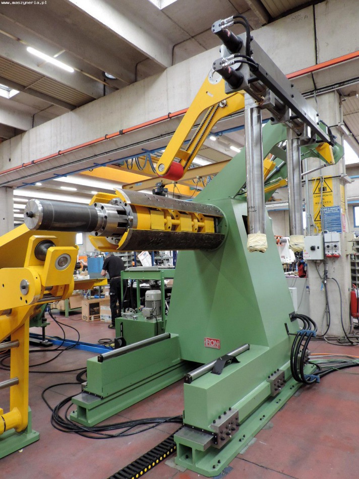 Oferowany odwijak do blachy 25 t IRON jest fabrycznie nowy, nieużywany. Cena obejmuje również wózek załadowczy CST do nakładania kręgu blachy bezpośrednio na ramię maszyny.