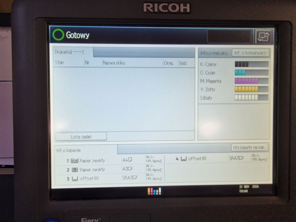 Sprzedam RICOH 7100X + WHITE + Podajnik banerów + FIERY + i1 2000
