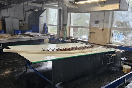Przedmiotem sprzedaży jest stół giętarski + wanna grzewcza do okien łukowatych technologii Schulten . Pozostały cztery zestawy stołów. Posiadamy również - stoły do gięcia- technologia Schulten - Łańcuchy dystansowe wraz z wypełnieniami do większości systemów występujących na naszym rynku - Frezarki do słupków z frezami - Piła do stali - Przyrząd do mierzenia łuków - Zgrzewarka Dwugłowicowa - Urządzenie do łączenia ram - Okleiniarki Urządzenia są w ciągłej produkcji Możliwość kupna pojedynczych maszyn W razie zainteresowania z Państwa strony zapraszam do kontaktu. Podana jest cena netto 8000 zł