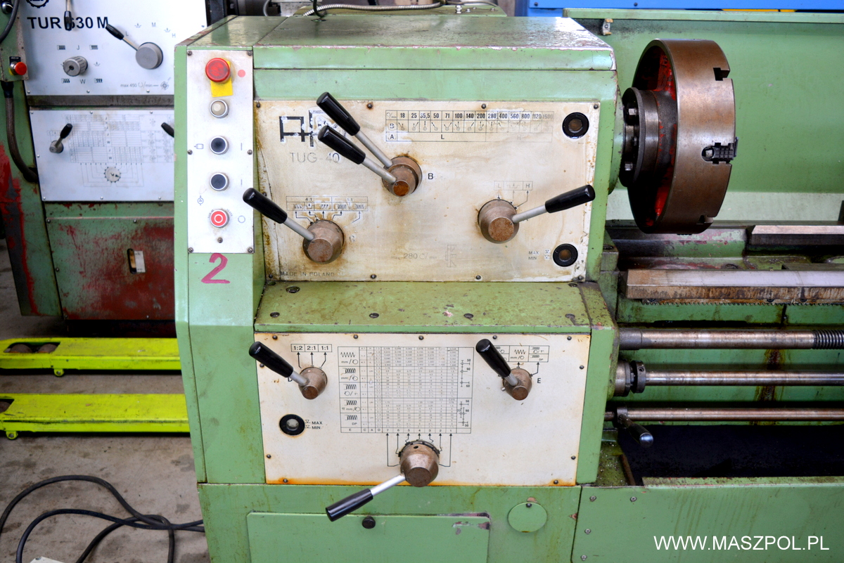 | Producent | Tokarka TUG 40 x 1000 - AFM ANDRYCHÓW - z ODCZYTAMI MITUTOIO . . TOKARKA SPROWADZONA ZE SZKOŁY ZAWODOWEJ W NIEMCZECH . SUPER STAN TECHNICZNY - WERSJA EXPORTOWA . Maszyna posiada hartowane łoże , w |