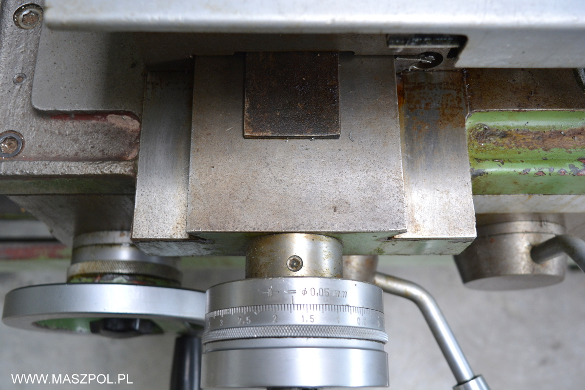 Maszyna posiada hartowane łoże , wyciągany mostek, uchwyt z kompletem szczęk ,ODCZYTY MITUTOIO , dokumentacja DTR.