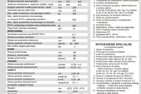 Zakres uzyskiwania prędkości obrotowych wrzeciona zapewnia ekonomiczne wykorzystanie tokarki zarówno przy obróbce zgrubnej, jak i wykańczającej przedmiotów z żeliwa, stali i metali kolorowych. Uniwersalna skrzynka posuwów i kinematyka tokarki umożliwia wykonanie w szerokim zakresie gwintów: metrycznych, calowych, modułowych, diametral pitch.