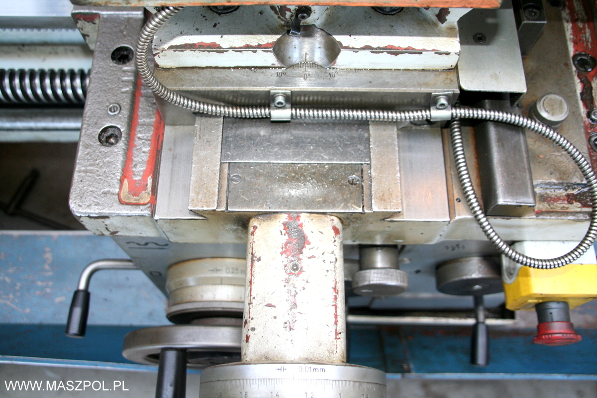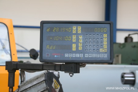 Tokarka posiada przyspieszone posuwy , odczyty cyfrowe w dwóch osiach , hartowane łoże , wyciągany mostek , fi wrzeciona 90 mm , dokumentacja DTR.