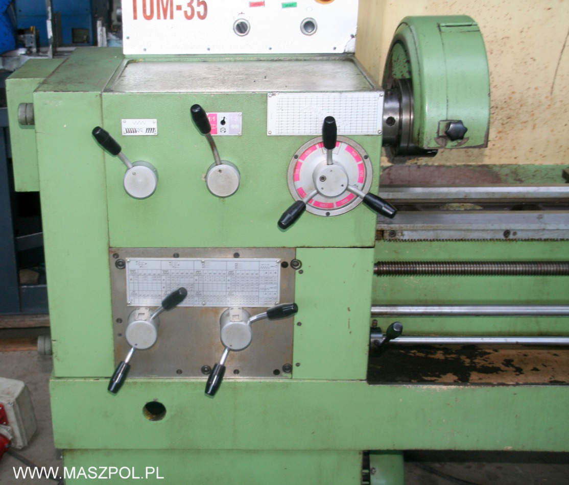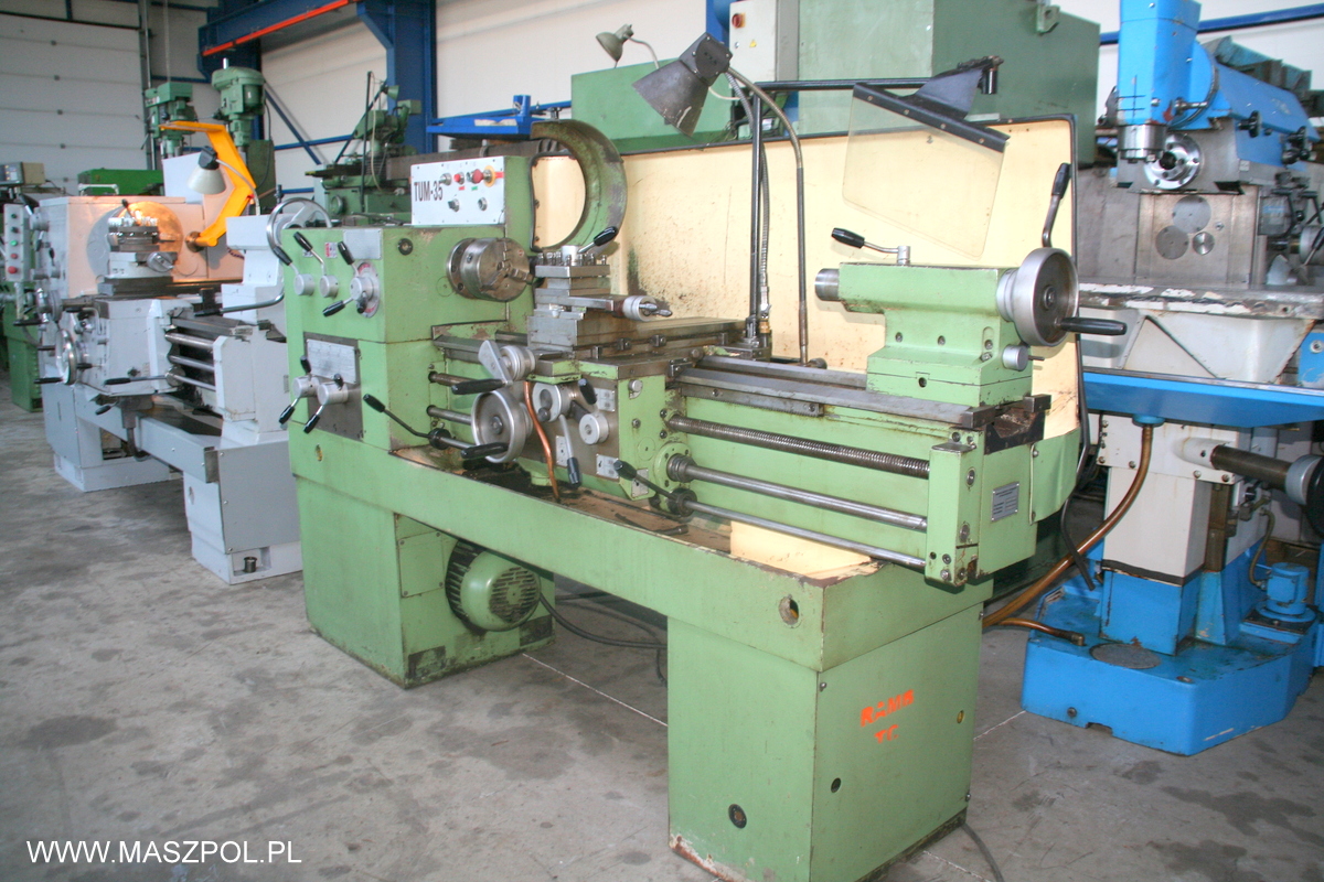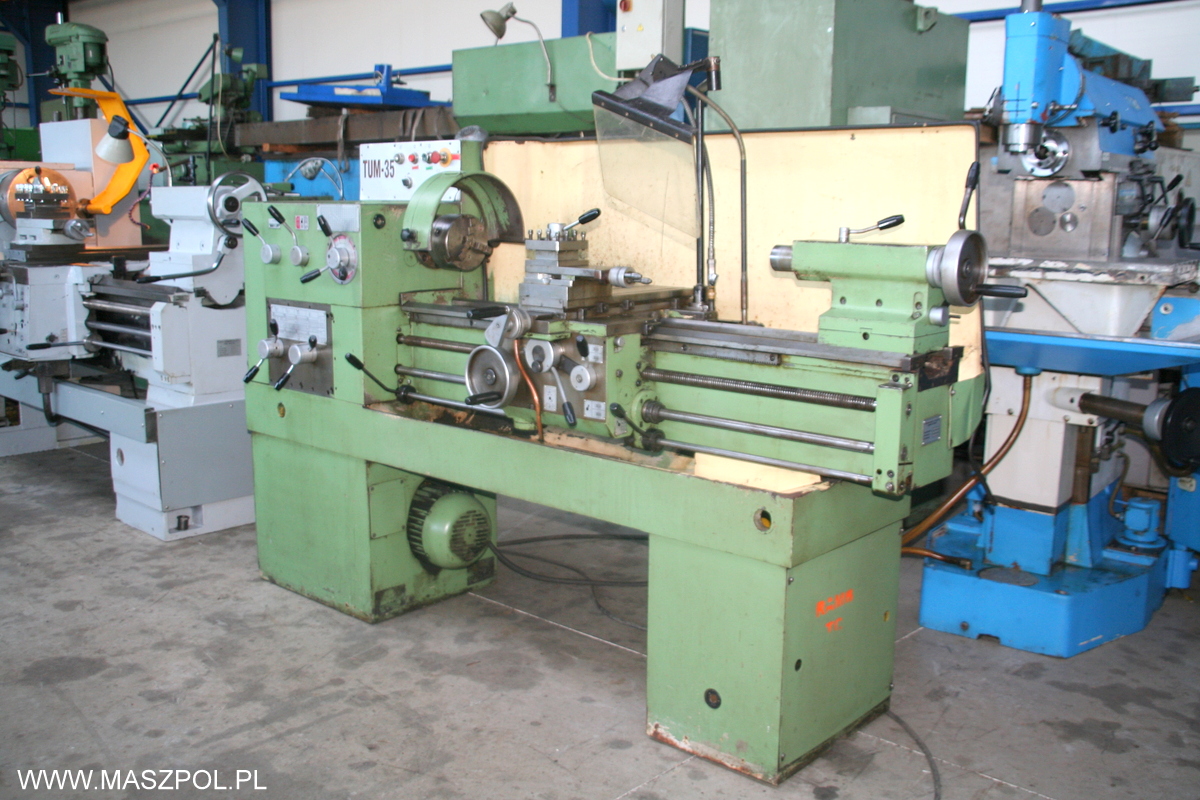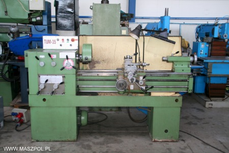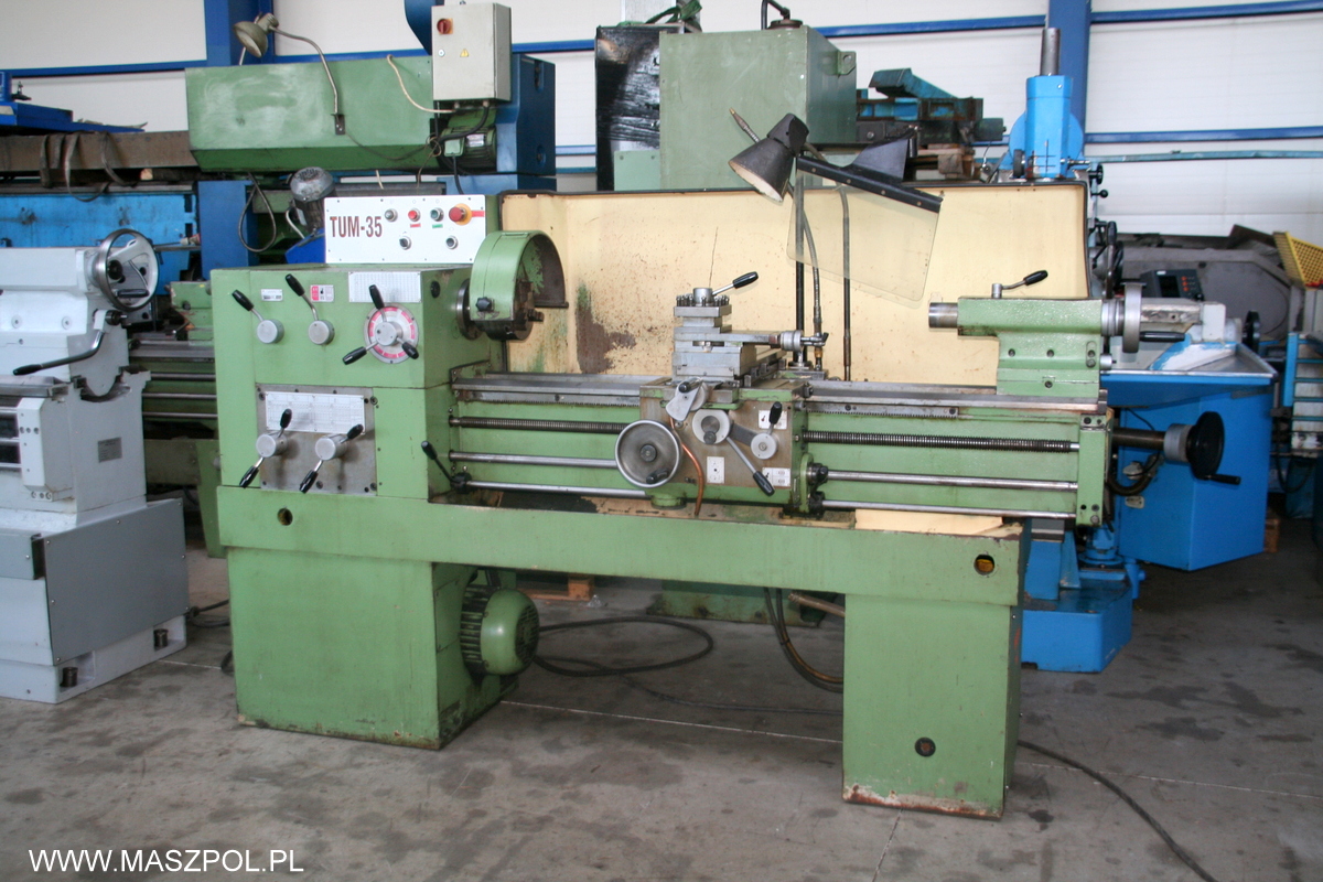 Tokarka uniwersalna TUM 35 D1 x 1000 FAMOT PLESZEW . SATAN TECHNICZNY BARDZO DOBRY - MASZYNA NIE PRACOWAŁA W POLSCE - EXPORT . Maszyna posiada hartowane łoże - dokumentacja DTR. . ZOBACZ FILM PRACE MASZYNY SKOPIUJ PONIŻSZY LINK I WKLEJ DO PASKA ADRESU LUB DO WYSZUKIWARKI INTERNETOWEJ: . youtube.com/watch?v=G7FcoGxEzHw . Dane techniczne: . - średnica toczenia nad łożem:350 mm - średnica toczenia nad suportem:200 mm - długość toczenia: 1000 mm - wrzeciono:36 mm - zakres obrotów wrzeciona:28 - 2500 obr/min - moc:4 kW - masa całkowita:1500 kg . Oprzyrządowanie : . - uchwyt trzyszczękowy 160mm - klucz do imaka - klucz do uchwytu - lampka z oświetleniem - dokumentacja DTR . ZOBACZ GALERIA ZDJĘĆ SKOPIUJ PONIŻSZY LINK I WKLEJ DO PASKA ADRESU LUB DO WYSZUKIWARKI INTERNETOWEJ: . photos.google.com/u/