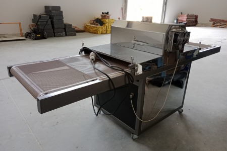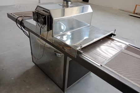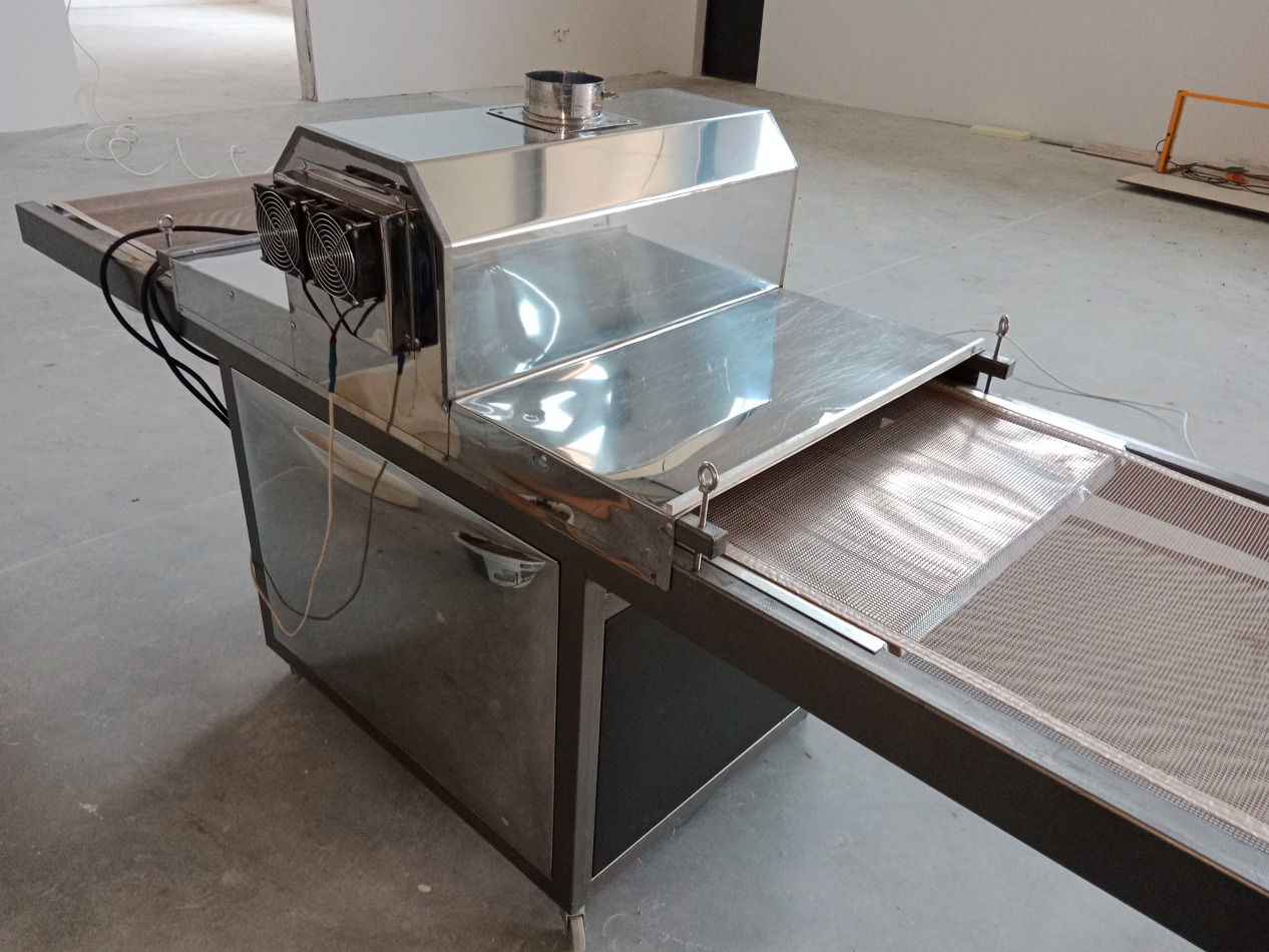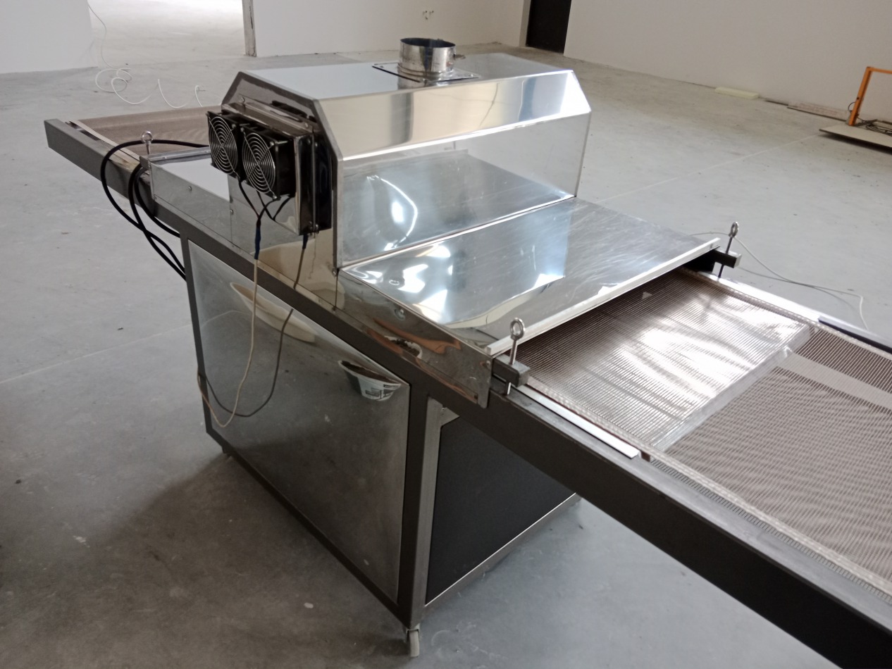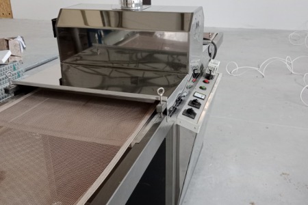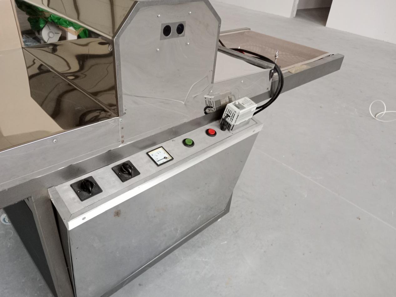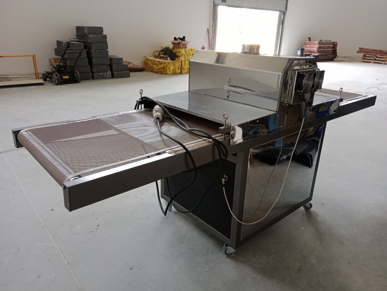 Tunel UV używany, maksymalna szerokość arkusza 700mm, płynna regulacja prędkości, regulacja wysokości stołu. Dwie lampy UV. Dwa wentylatory chłodzące, kominek wyciągowy. Całkowite wymiary maszyny długość 3m, szerokość 1,1m, wysokość 1,3m. Więcej informacji telefonicznie.