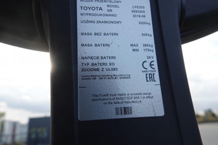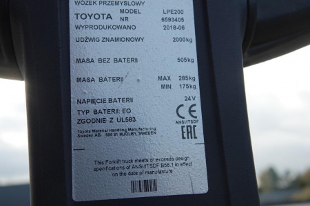 Wózek paletowy elektryczny Toyota LPE200 BT Levio