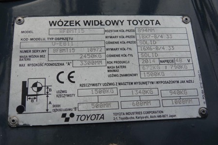 Wózek widłowy unoszący Toyota 8FBMT15 (Traigo 15)