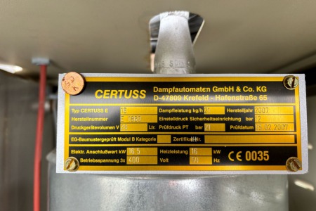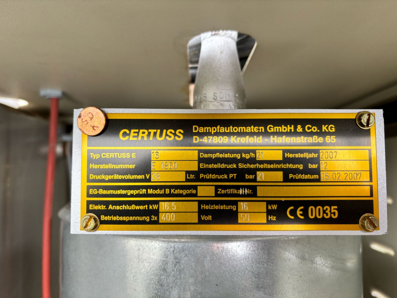 Przedmiotem sprzedaży jest wytwornica pary Certuss E 16. Specyfikacja: